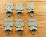 - 6 Route 66 Bottle Opener Cast Iron Antique Wall Mounted Bar Slight Rust