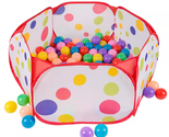 The Kids Pop-up Six-sided Ball Pit Tent is a bundle of fun! This hexagon-shaped playpen is designed for up to two children to use at a time, and comes with 200 colorful balls made of durable, phthalate-free plastic tough enough to withstand rough play. This mini ball pit is the perfect activity for toddler boys and girls year-round, indoors and out.