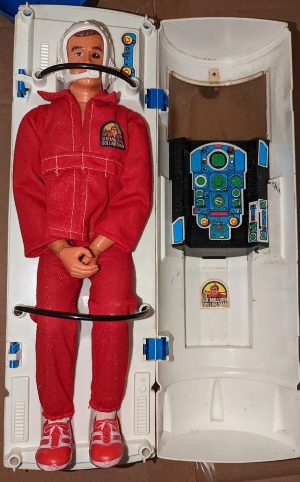 - 6 SIX MILLION DOLLAR MAN - ACTION FIGURE DOLL, ROCKET, LAB, RADIO, ENGINE BLOCK