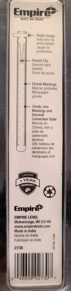 6? STAINLESS STEEL SHOP POCKET RULER mm 1/32? Scales, Decimal Conversion Chart, Depth Gauge