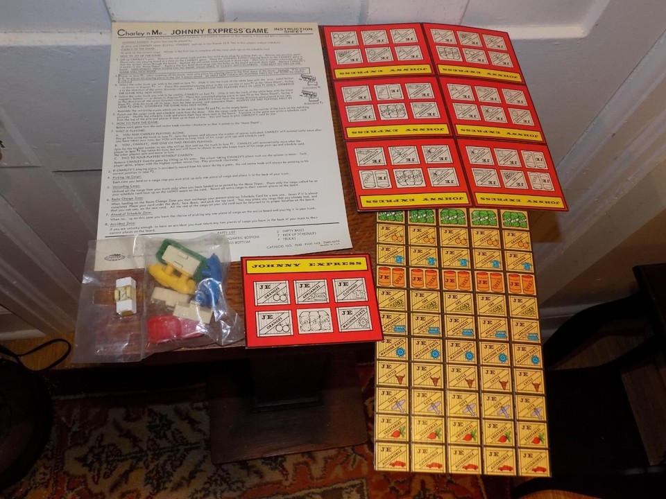 Express Truck Game with card, un-opened playing pieces and unpunched cards with
