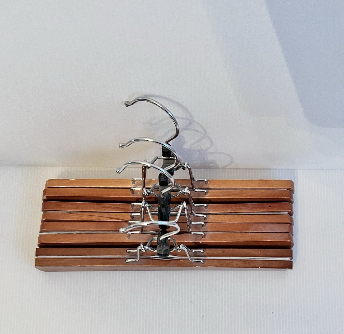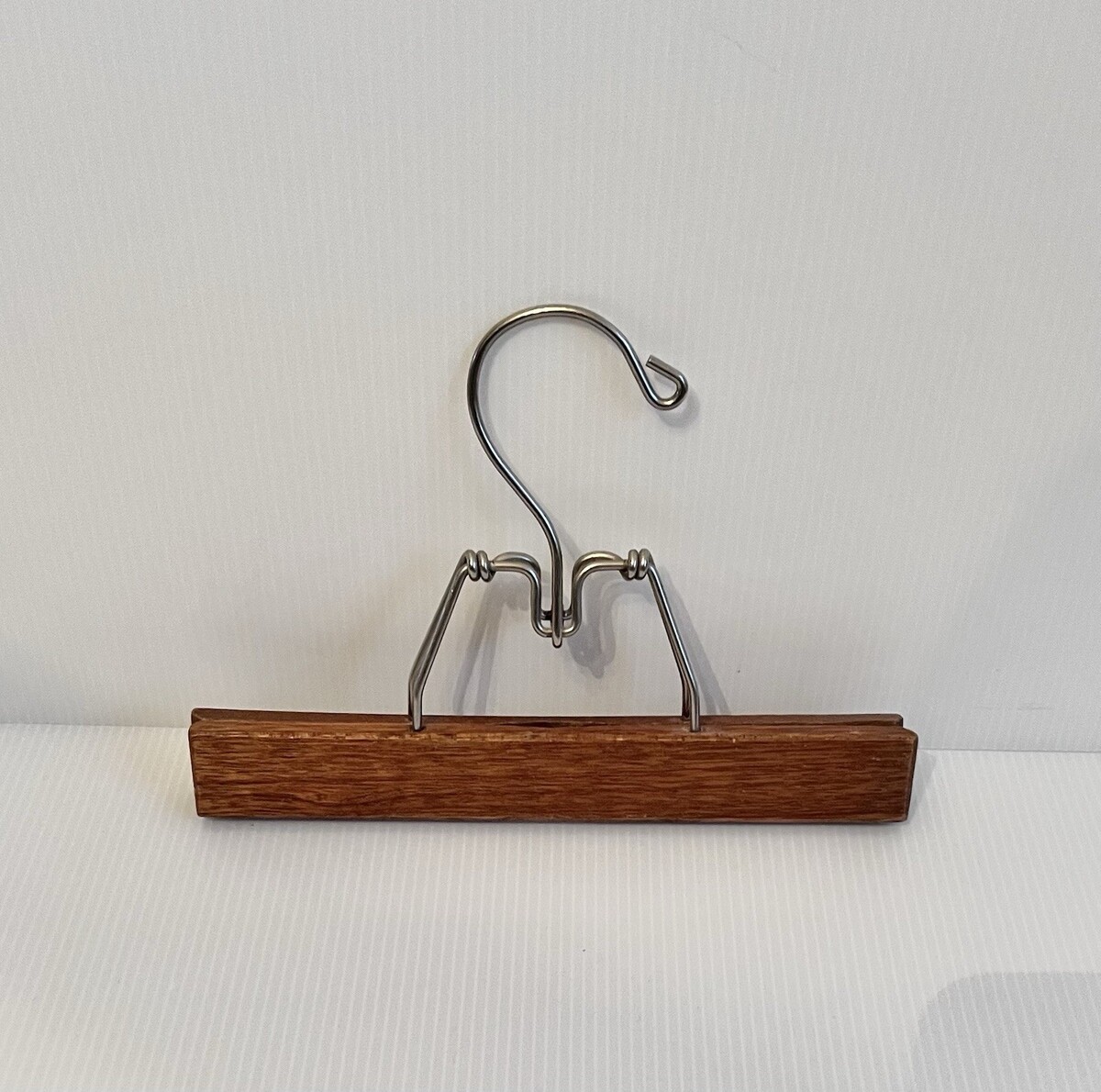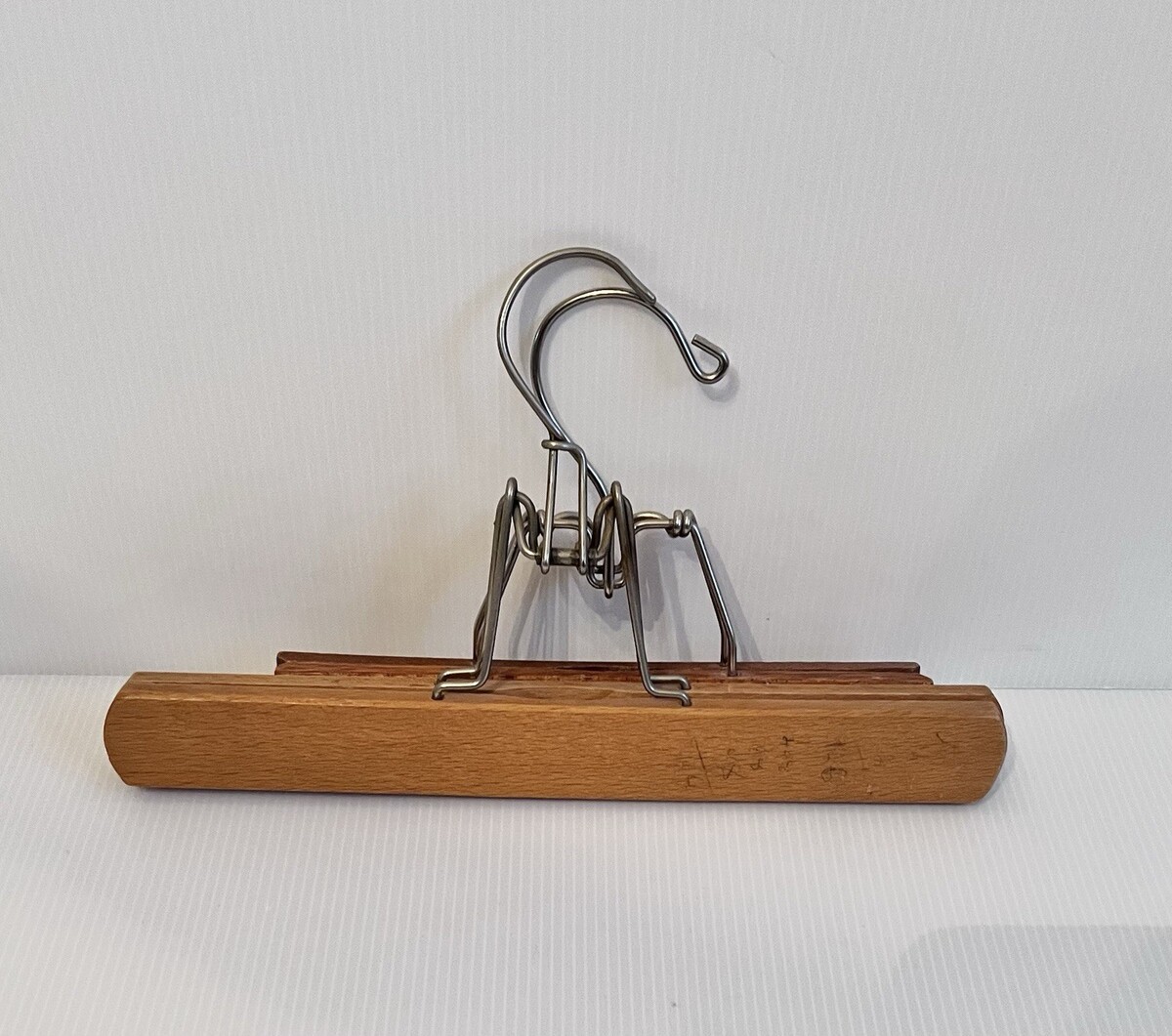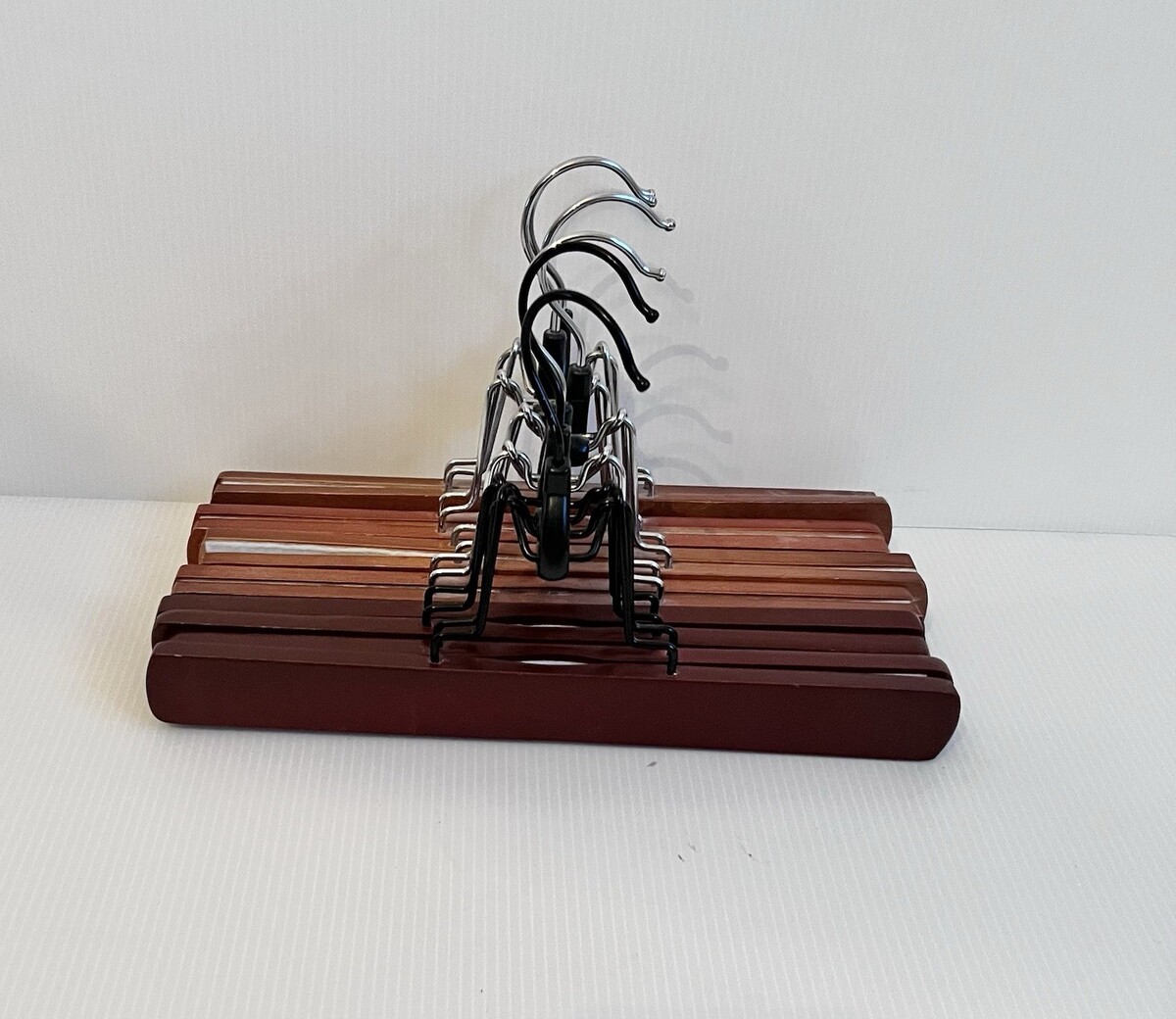 - 6 Wooden Clamp Hangers Pants Trousers Skirt Natural Wood & Metal Swivel Lot of 6