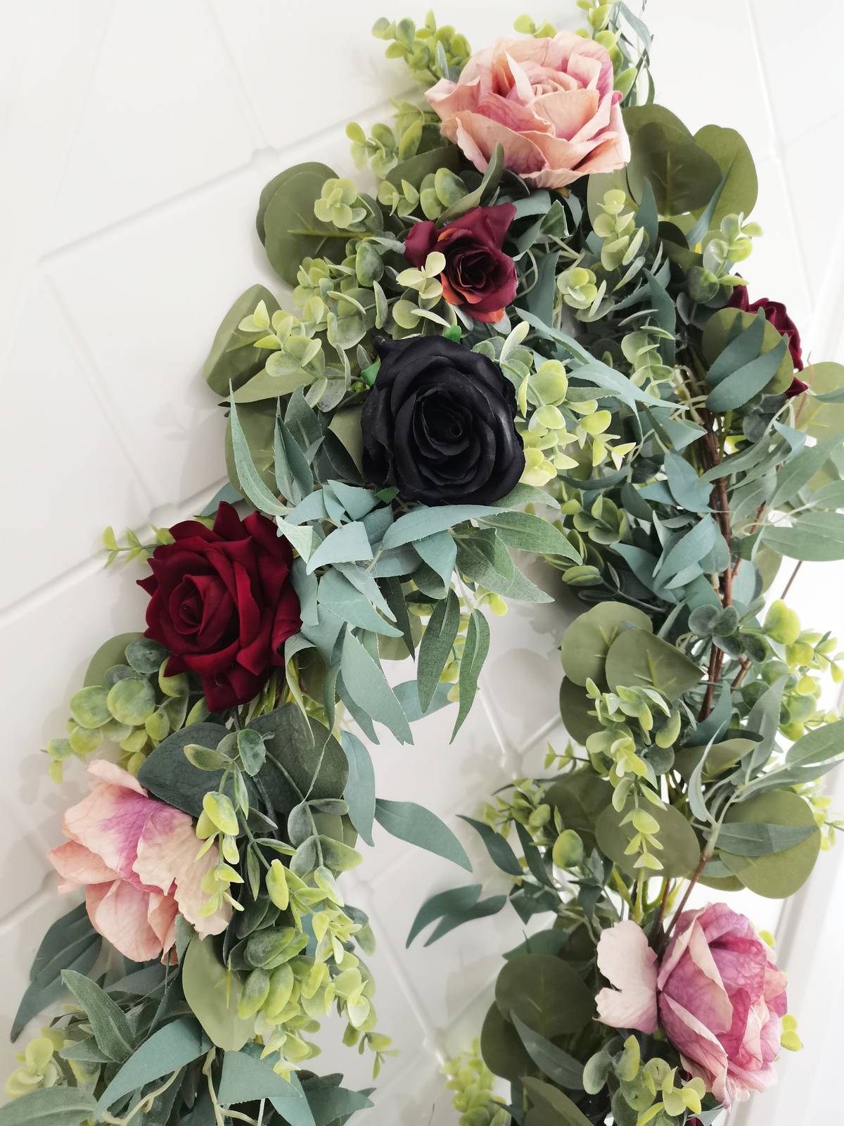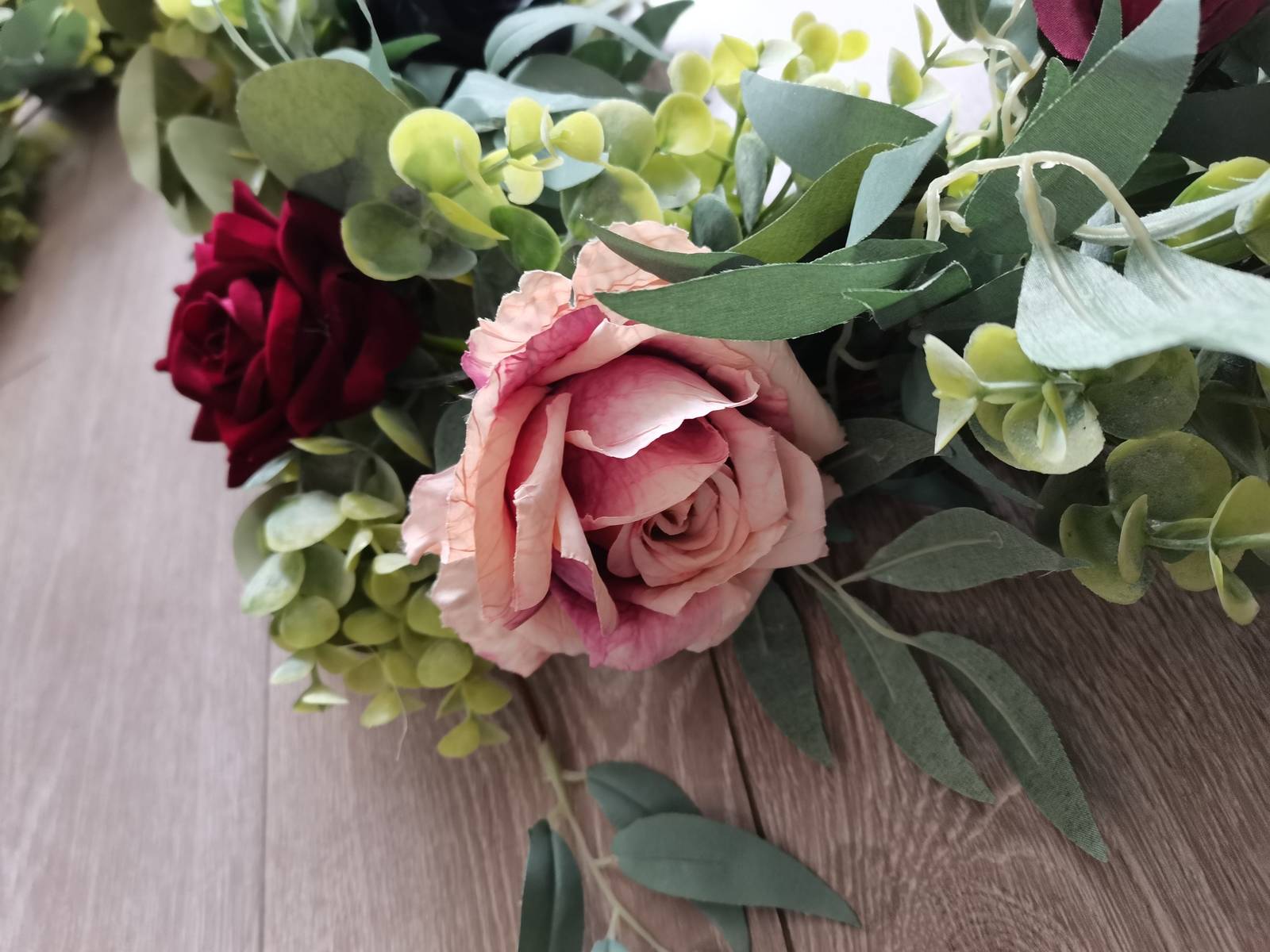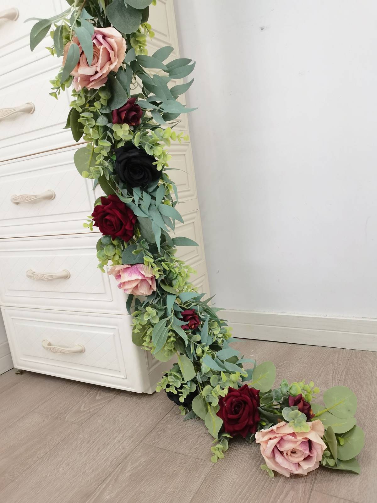 - 6 feet artificial burgundy rose blush flower Eucalyptus Garland, Wedding garland
