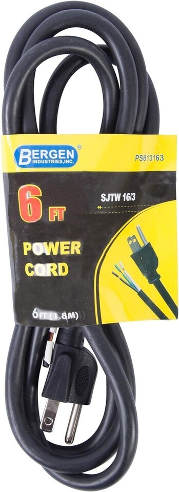 - 6 ft 3-Wire Appliance Cord, 16 AWG, 13A/125V Weather Resistant Power Tool Cable