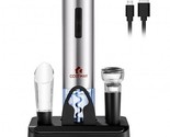 ? The wine bottle set is chargeable and powerful ? Can open up to 60 bottles in a 100% charge state ? The wine stoppers help keep your drinks fresher for longer ? Made of high-quality stainless steel safe durable and smooth ? The foil cutter helps remove the wine seals with one turn of a hand ? The wine pourer makes the wine pour into the glasses more smoothly ? 6-in-1 multifunctional wine bottle set can be the perfect gift for wine lovers ? The compact and portable design allows for convenient carrying and storage ? The electric wine bottle opener is easy and fast to remove the cork in seconds ? Can be the perfect holiday and birthday gift for your family friends and colleagues ? The solid base helps store all the accessories and show a tidy and elegant appearance