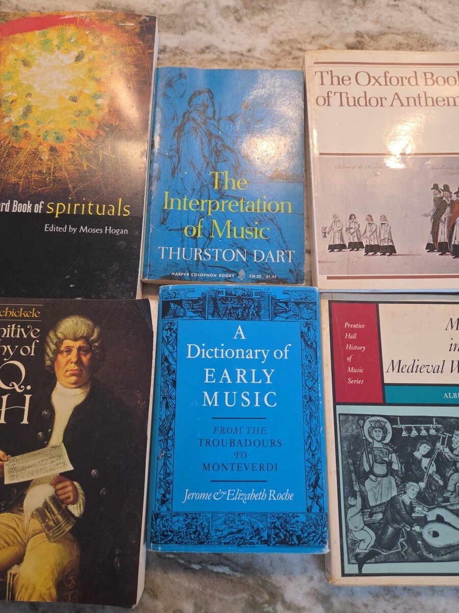 - 6 music textbooks Roche Tudor Anthems Bach Oxford Spirituals Hogan