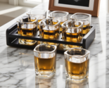Our shot glasses are easy to clean. Square shot glasses are dishwasher safe, which will save you time. The black plastic shot glasses holder is not easy to accumulate dust and can be cleaned by gently wiping it with a rag.