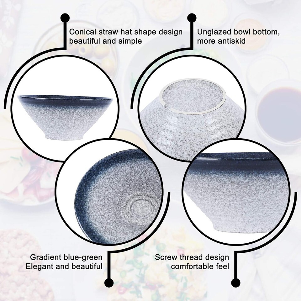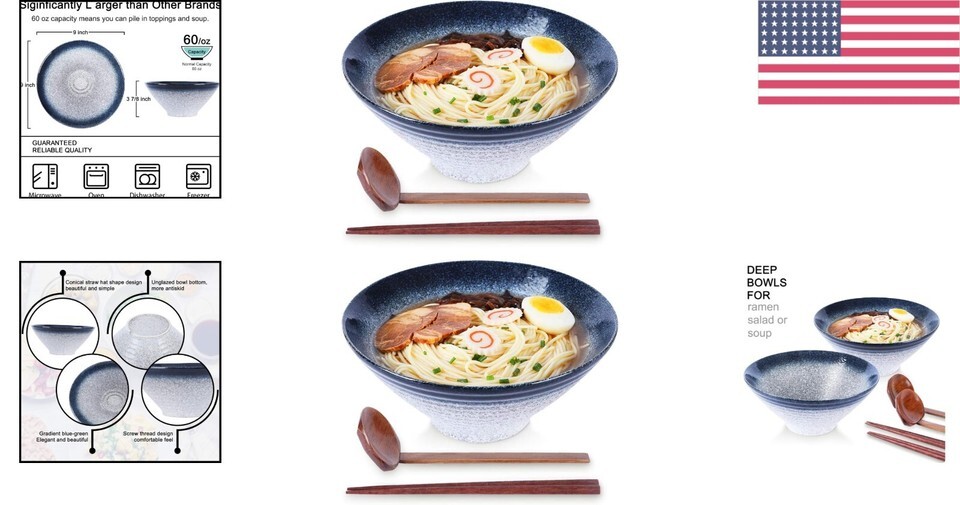 60 Oz Traditional Ramen Soup Bowl Set - Includes Spoons Chopsticks, Lead-Free