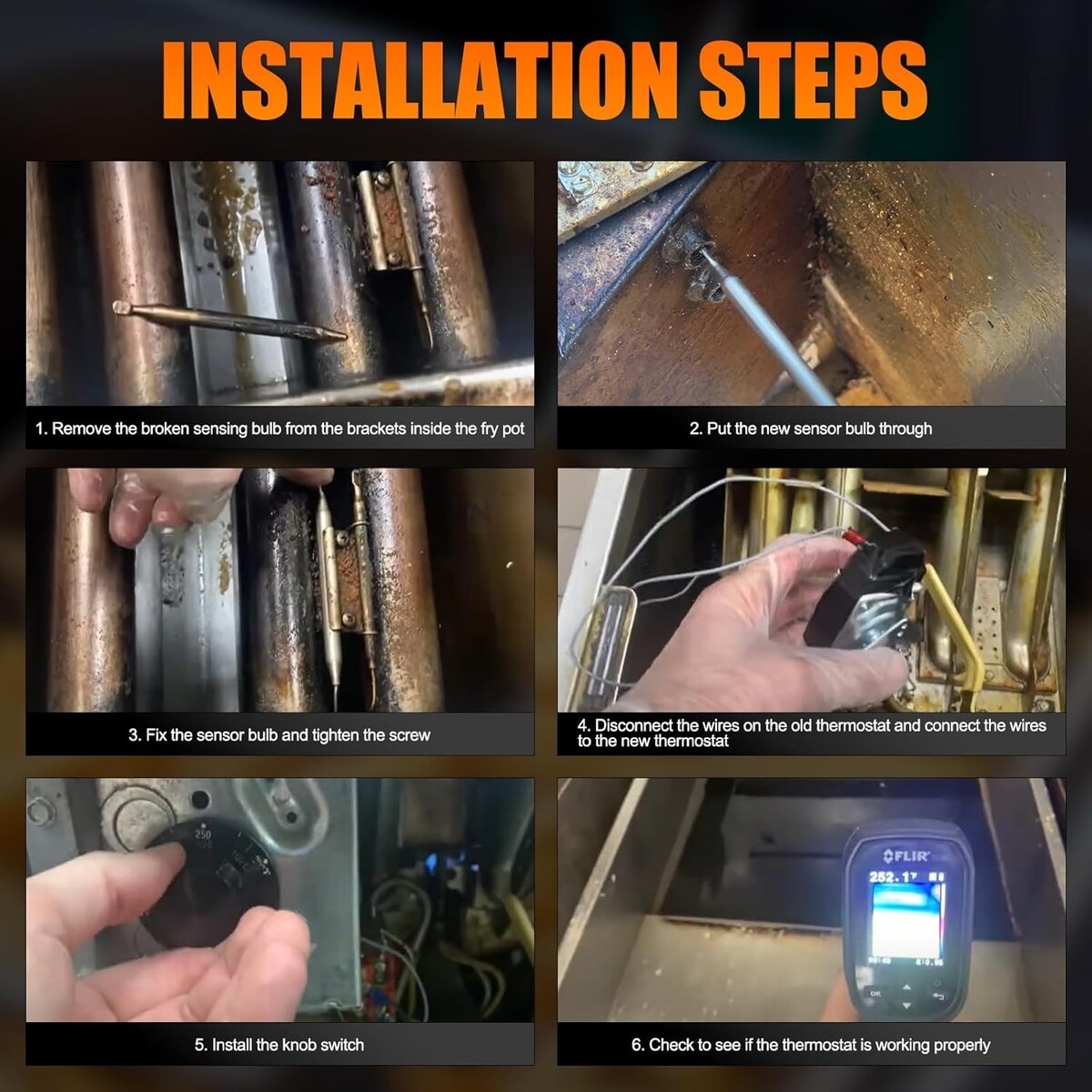 Our fryer thermostat RX-1-36 is easy to Install, remove the broken bulb and wires, then install new thermostat, dispense with time and cost