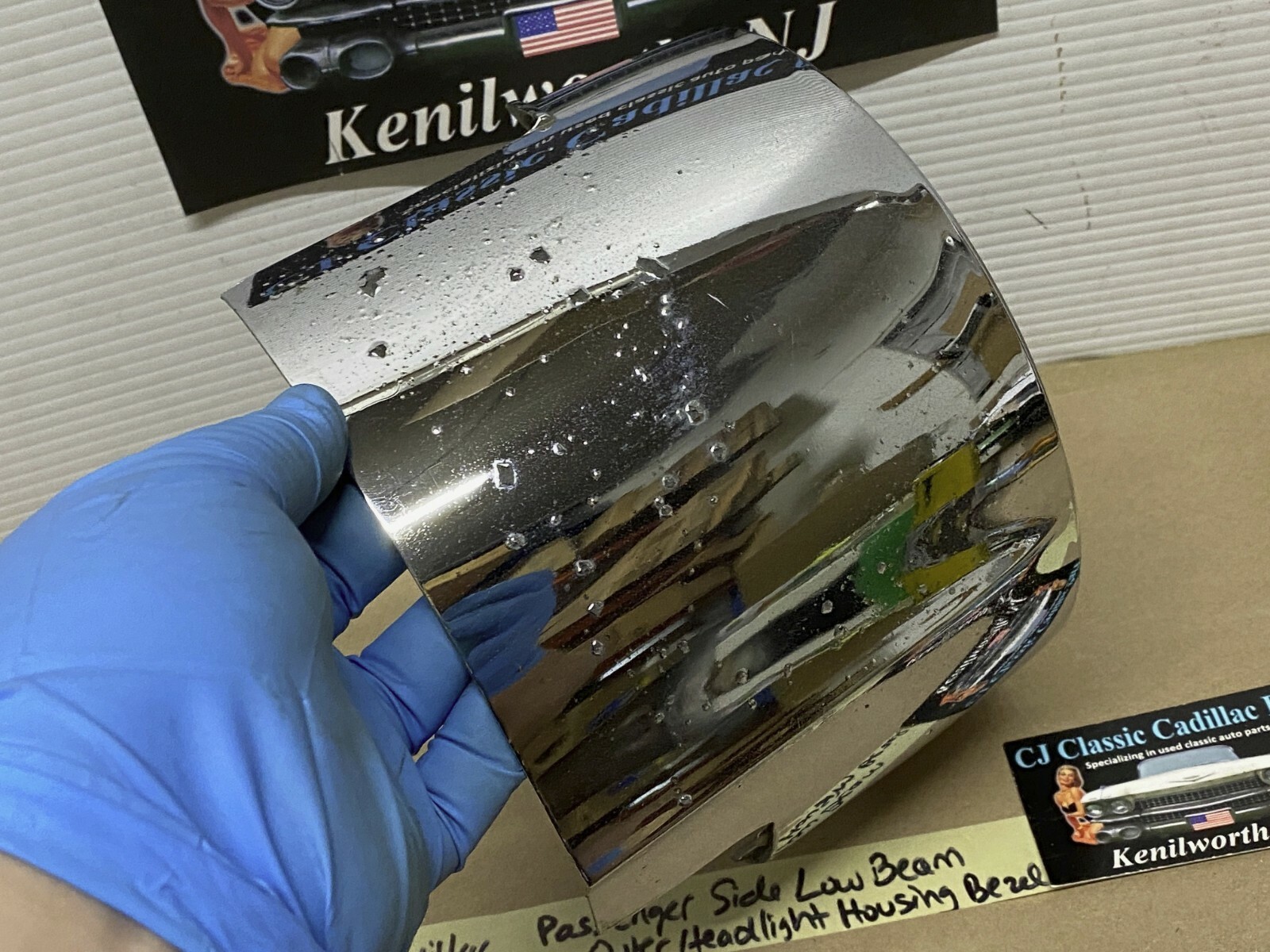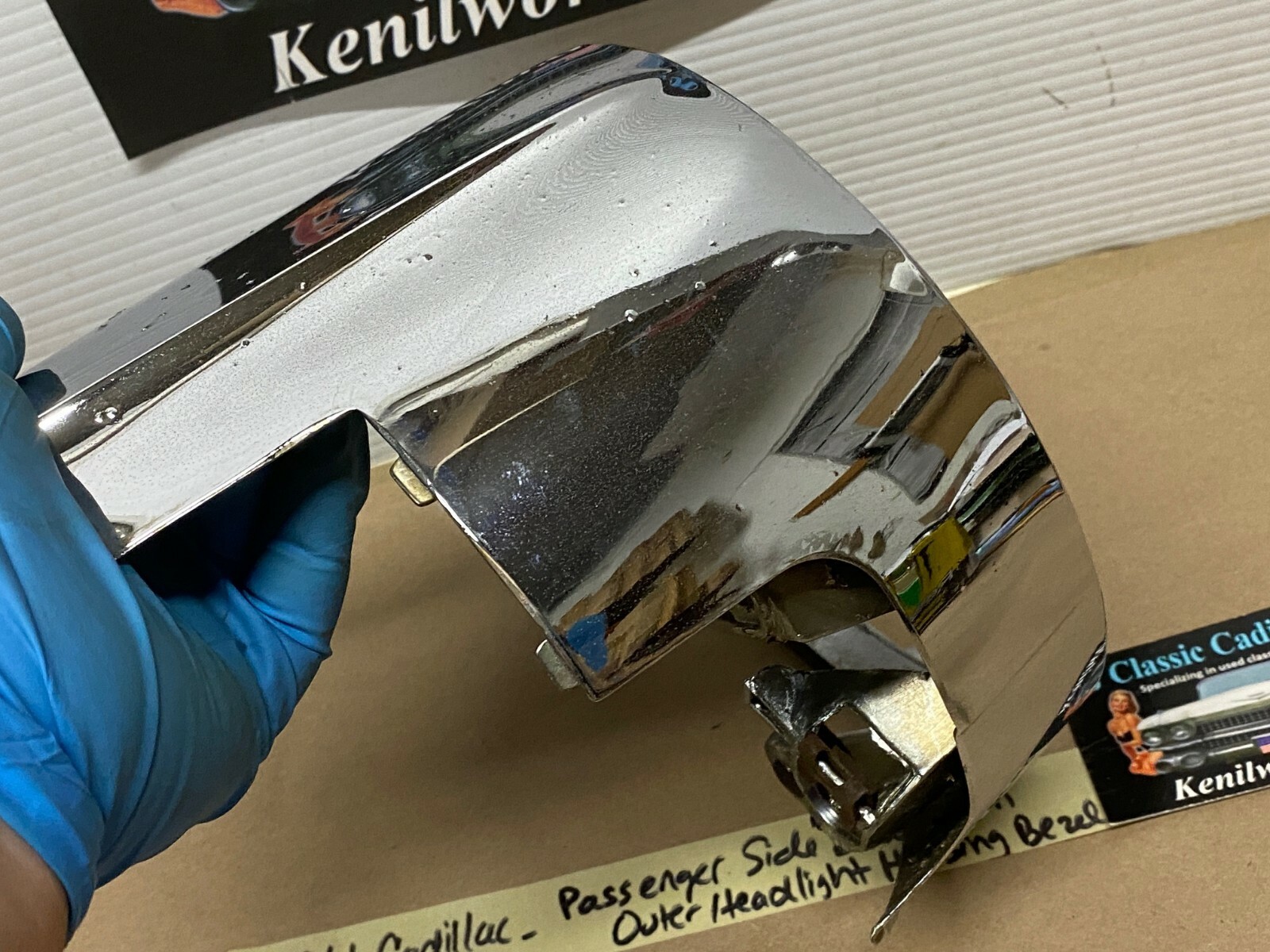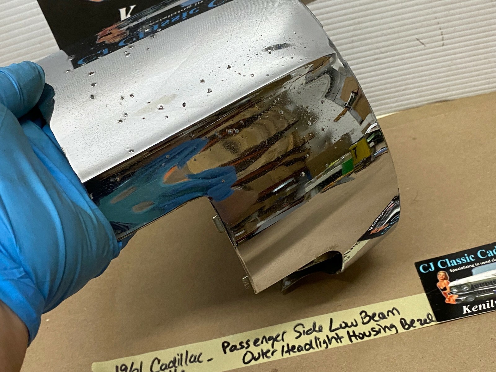 - 61 Cadillac Deville RIGHT PASSENGER SIDE OUTER LOW BEAM HEADLIGHT HOUSING BEZEL