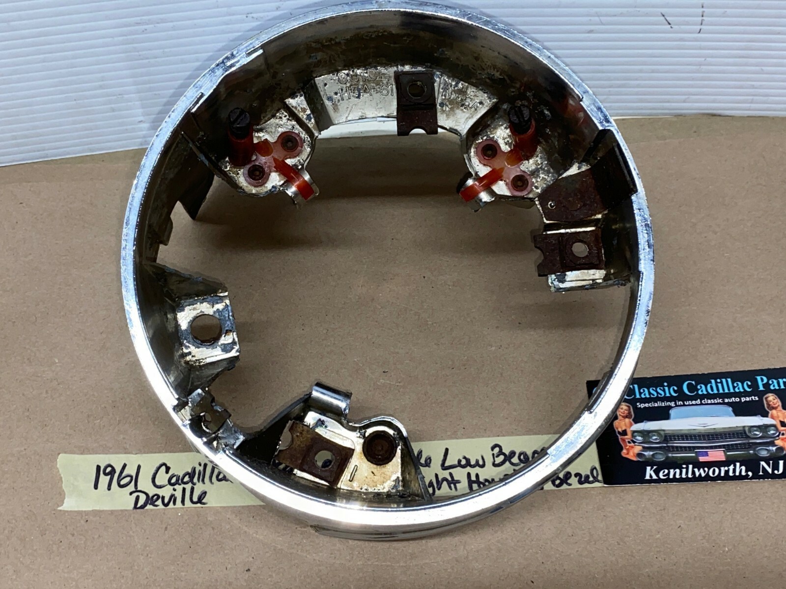 61 Cadillac Deville RIGHT PASSENGER SIDE OUTER LOW BEAM HEADLIGHT HOUSING BEZEL