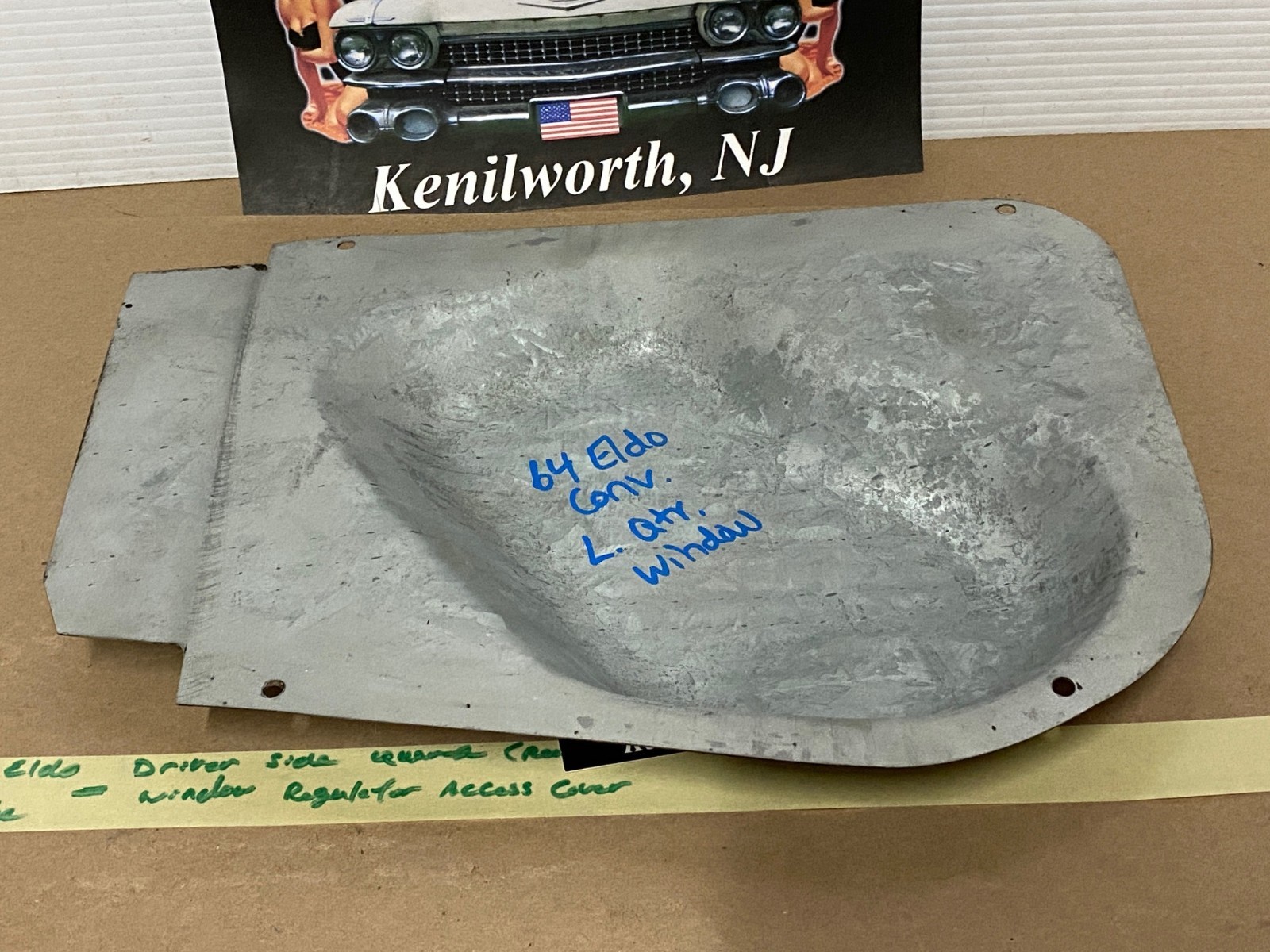 64 Cadillac Eldorado Conv LEFT REAR QUARTER WINDOW REGULATOR ACCESS PANEL COVER