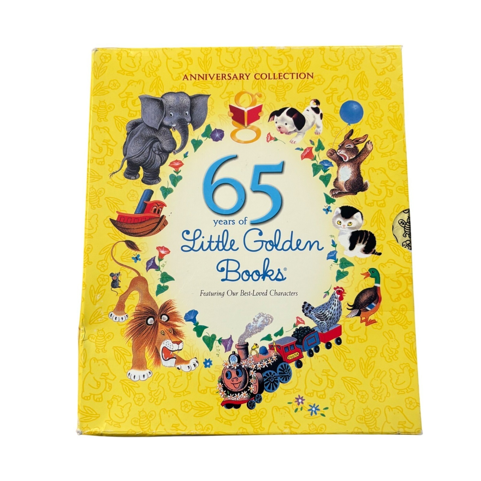 A collection of classic Little Golden Books celebrating 65 years, featuring timeless stories and characters. Includes a blank book for creativity.