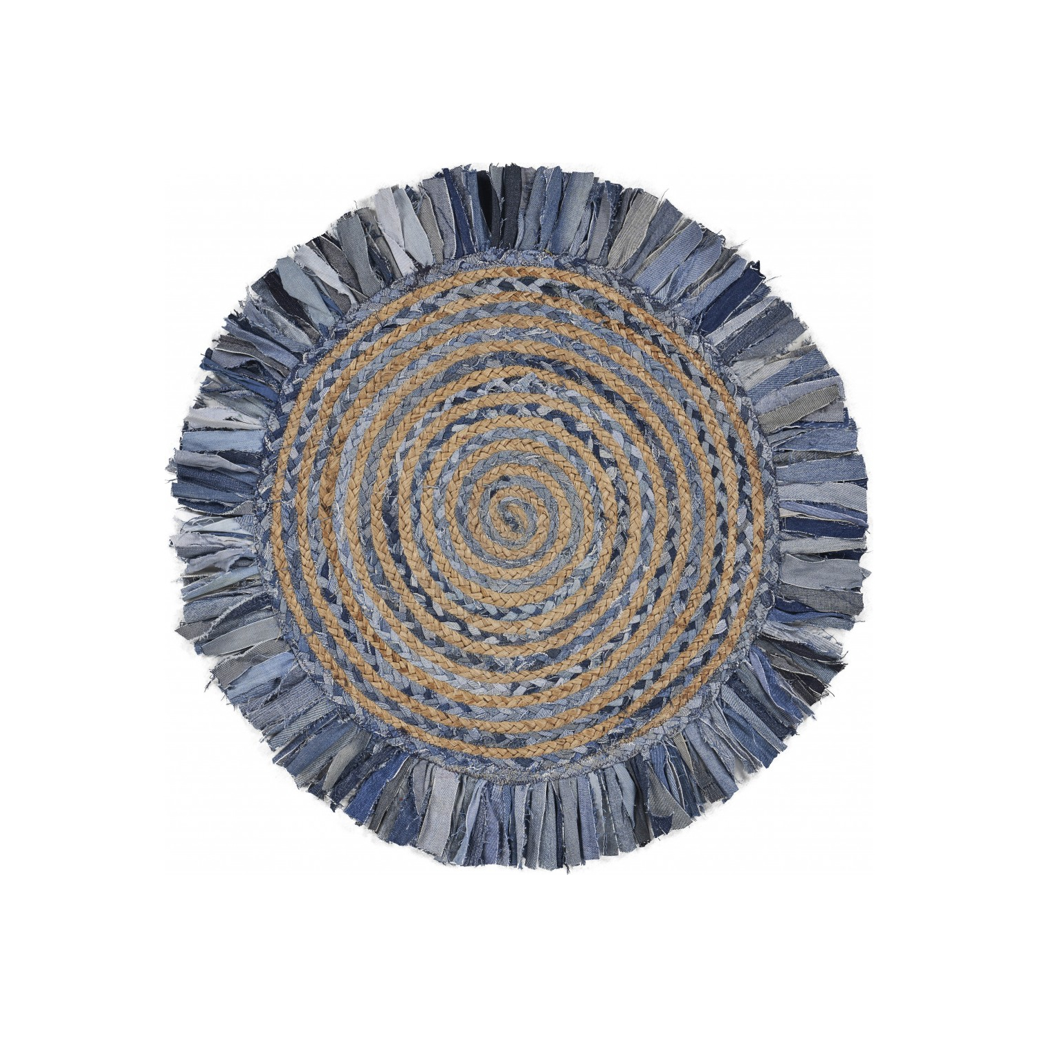 - 66 x 66 in. Denim Blue & Natural Jute Round Swirl Fringed Rug