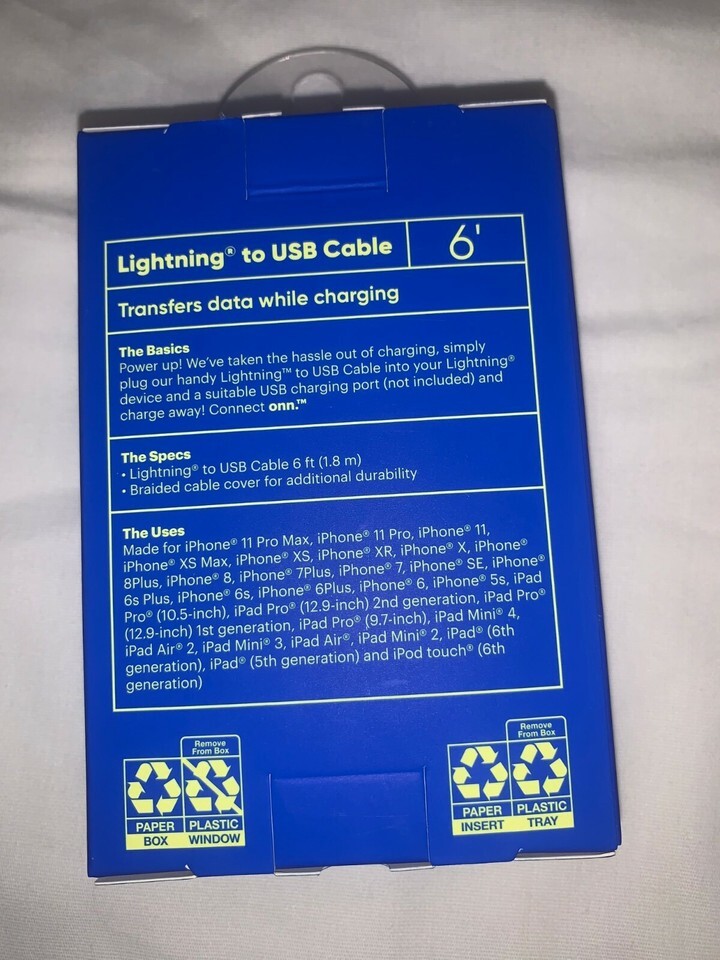 - 6FT CONNECT ONN BRAIDED USB CHARGING CABLE LIGHTING & USB-C