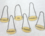 6PC Liquor Decanter Labels Butter Yellow Whiskey Brandy Scotch Tequilla More each is 2 x 1 inch the chains could be made shorter?