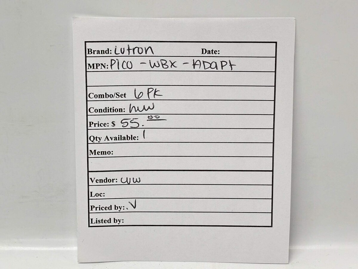 6PK Lutron PICO-WBX-ADAPT Wallbox Adapter for Pico Wireless Remote New The Lutron PICO?WBX?ADAPT is a mounting bracket that enables you to securely affix a Pico wireless remote to a wall surface or over an existing electrical wallbox?no wiring needed. It?s ideal for adding a clean, flush-mounted control point when using the Pico remote alongside a Caseta or other Lutron smart dimmer/switch system. The adapter is designed to be used with the Claro designer-style wallplate (sold separately) and supports both surface-mount and wallbox installations. Made of white plastic and sized to fit standard wallbox footprints, it delivers a sleek, integrated installation. Great for retrofits or new installations where you want the look of a conventional switch but the flexibility of wireless remote control. Listed by: Maksim (Sales Team) ?Meaning is about making a difference, not having an audience.?~ Adam Grant (A positive moment brought to you by Help Resale) About Us Welcome to Help Resale, your go-to consignment shop where value meets quality. At Help Resale, we're dedicated to providing you with an exceptional shopping experience, whether you're looking to find the best deals or consign your items. Need to buy a product, but don't see it in our store? Please feel free to reach out to us and we will help you find it! Help Resale 7200 Fair Oaks Blvd Suite 120 Carmichael CA 95608 Business Hours: Monday-Friday: 9:00 am to 5:00 pm (PST) All product and company names are trademarks TM or registered trademarks of their respective holders. Use of them does not imply any affiliation with or endorsement by them.