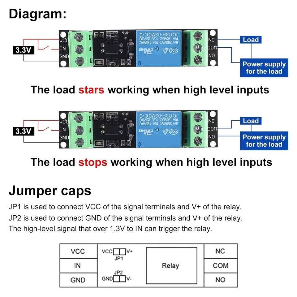 - 6Pcs DC 3.3V Relay Module 1 Channel Optocoupler Module 3V/3.3V Relay Isolated Dr