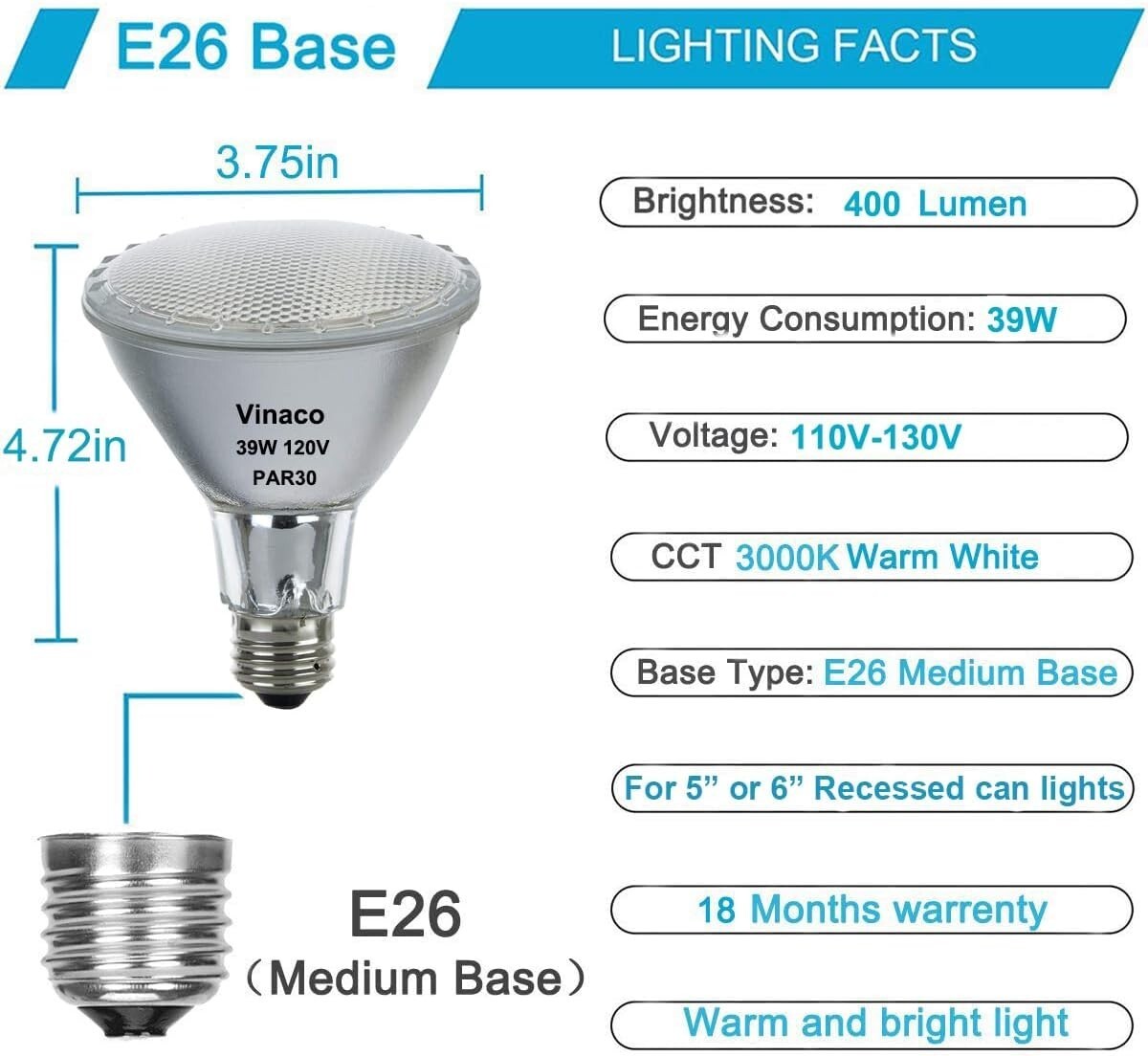 400 lumens brightness, 3000k warm white light, par30 39w 120v creates a cozy and relaxing atmosphere, giving your home, office or shop a warm and welcoming ambiance.