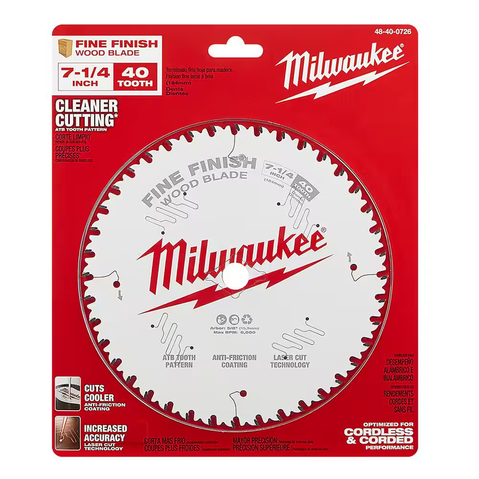 - 7-1/4 In. X 40-Tooth Fine Finish Circular Saw Blade