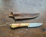 - 7.5" Damascus Steel Hunting Skinning Knife Composite Handle With Leather Sheath