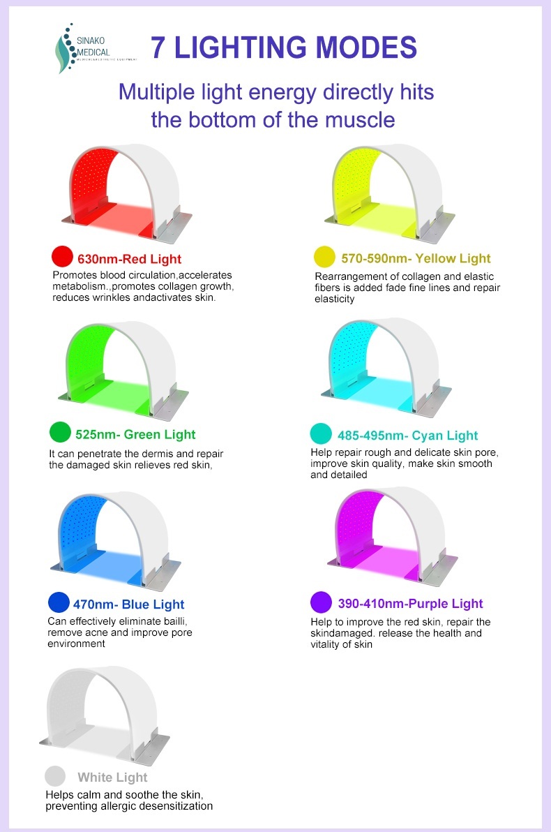 ? 7 LED Light Modes – Red, Blue, Green, Yellow, Purple, Cyan Laser White to treat multiple skin concerns.