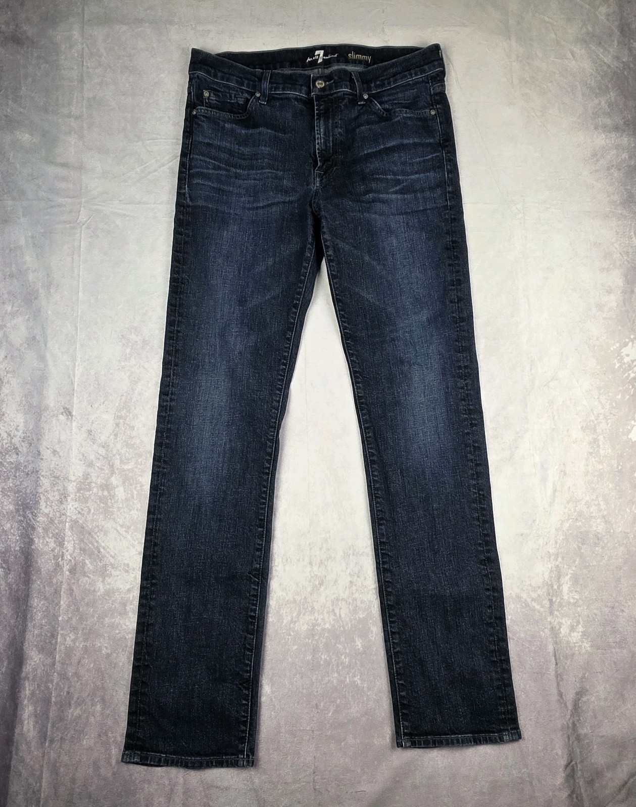 - 7 For All Mankind Slimmy Jeans Men’s 36 Blue Dark Wash Stretch Slim Fit Denim