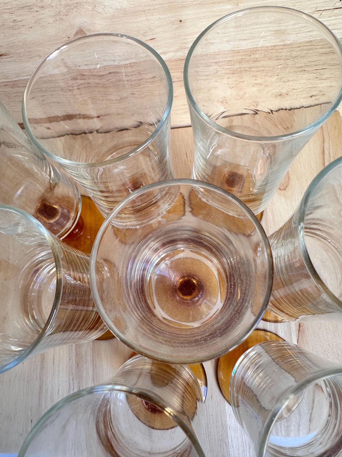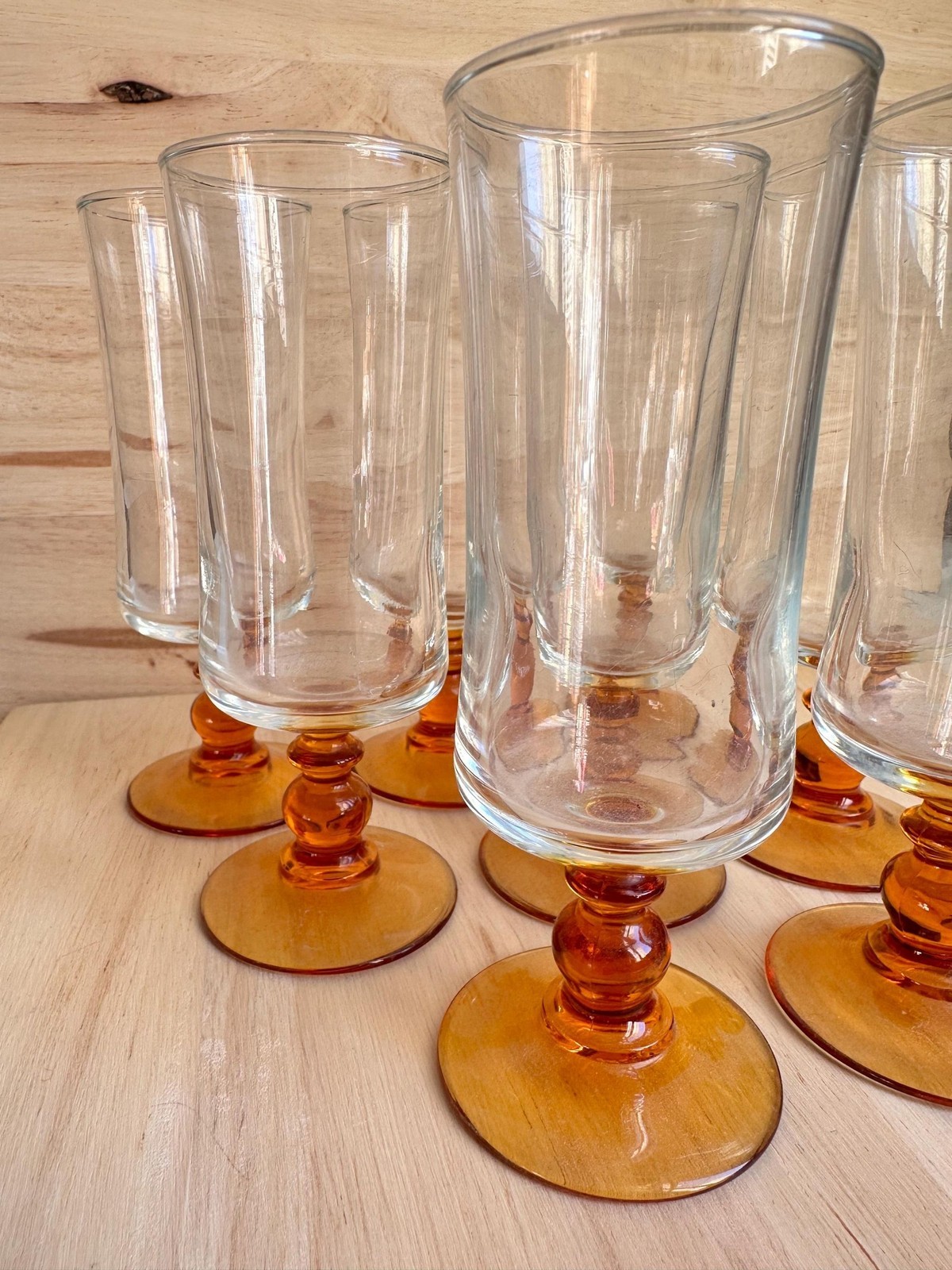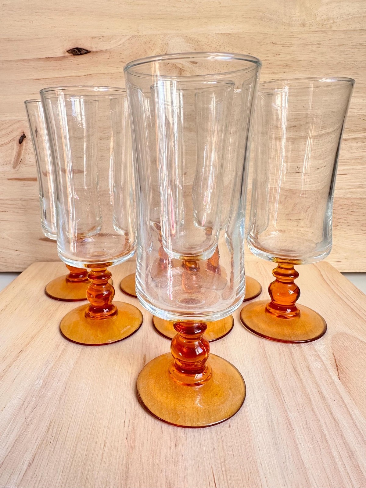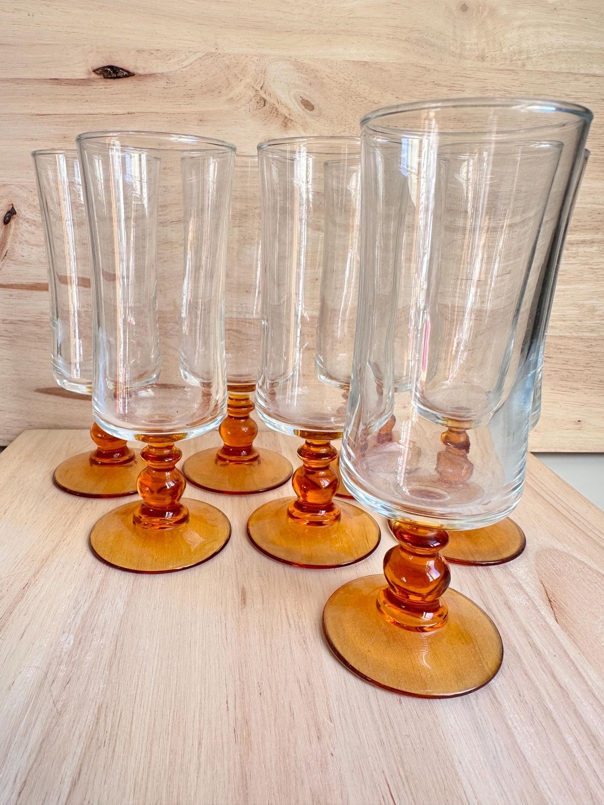 These vintage amber-stemmed glasses are ready to party like its 1975! With their retro vibe and warm glow, theyll add a touch of sunshine to any occasion.