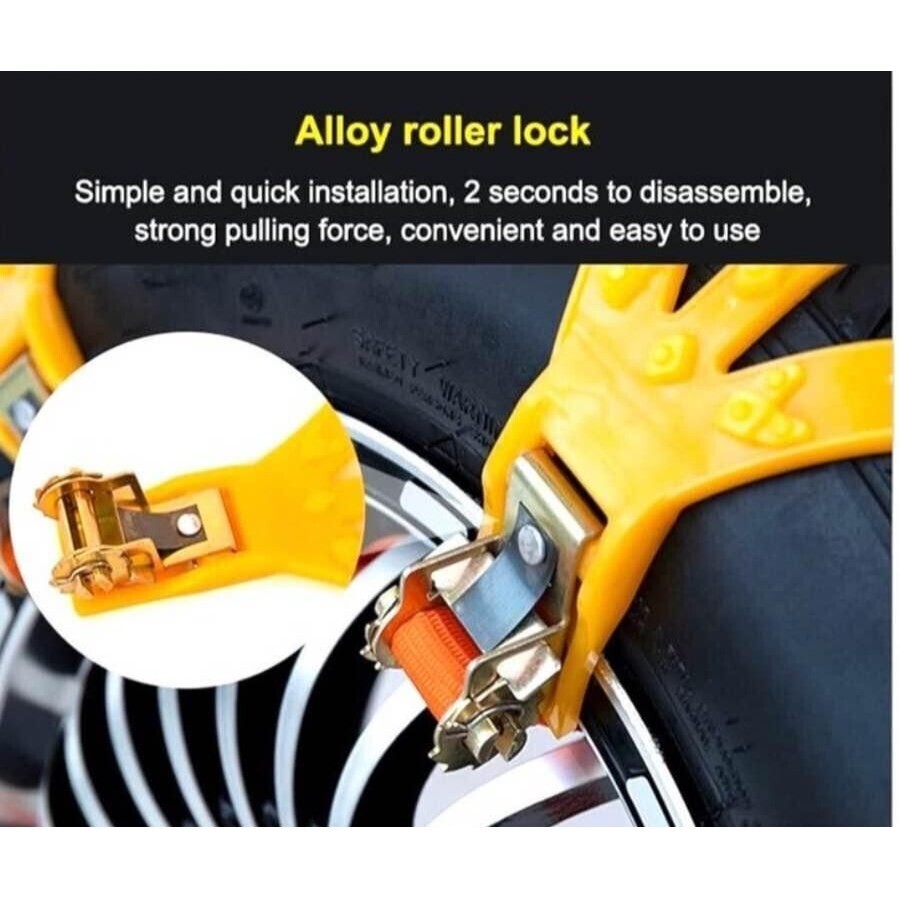 Car Snow Chains - Premium Quality Strong Durable All Season Anti-Skid Car, SUV, and Pick Up Patterned Tire Chains for Emergencies and Road Trip (Orang, 7-Pack)
