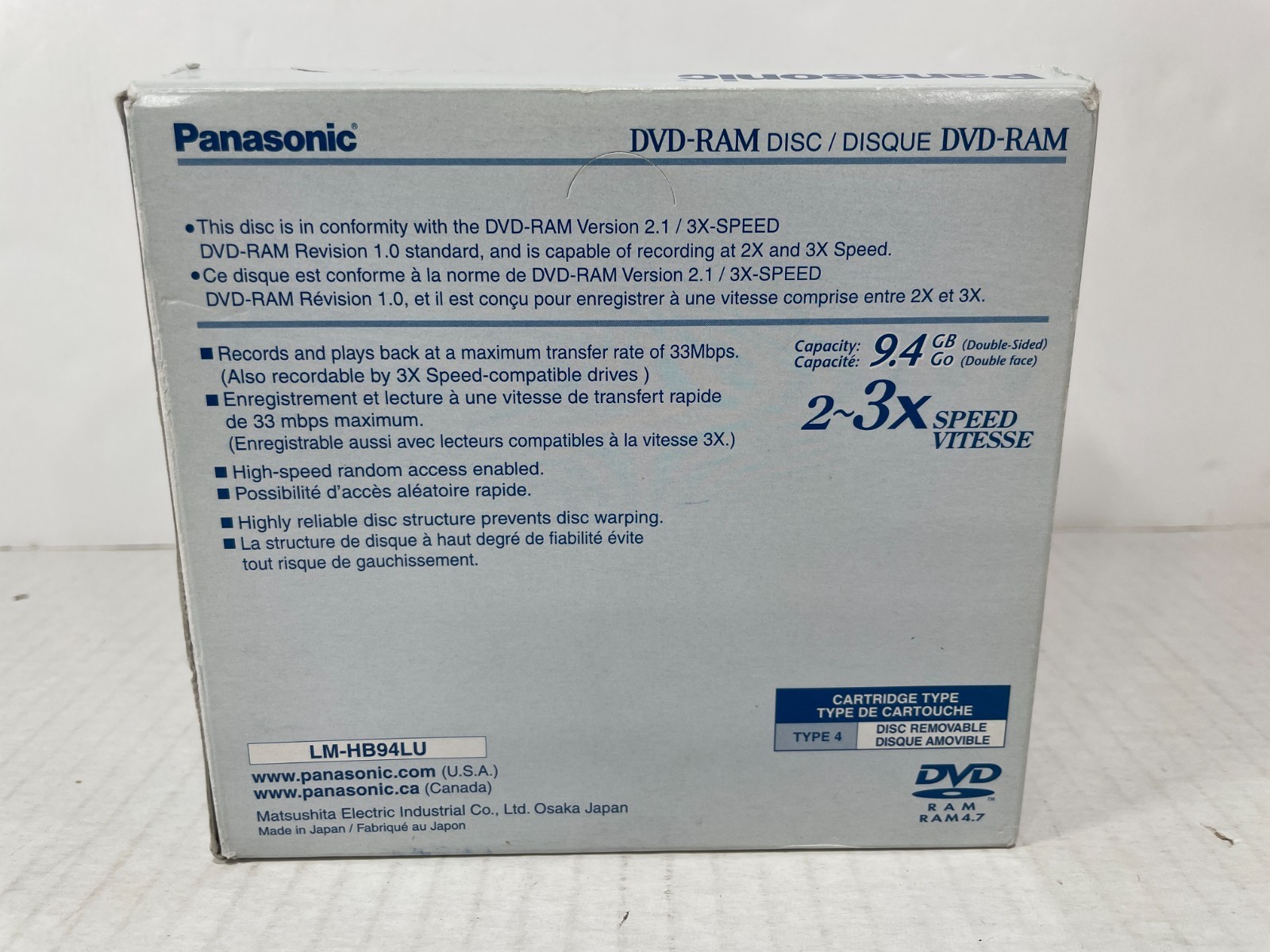 - 7 Panasonic DVD-RAM 240 Min 2-3x Speed LM-HH94LU New 9.4 GB