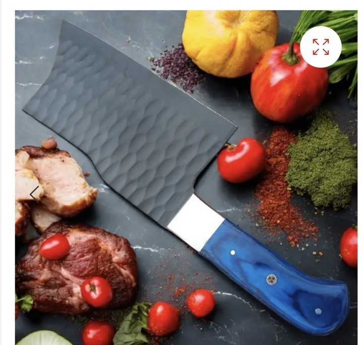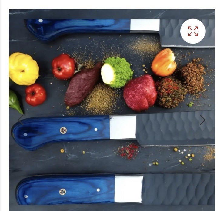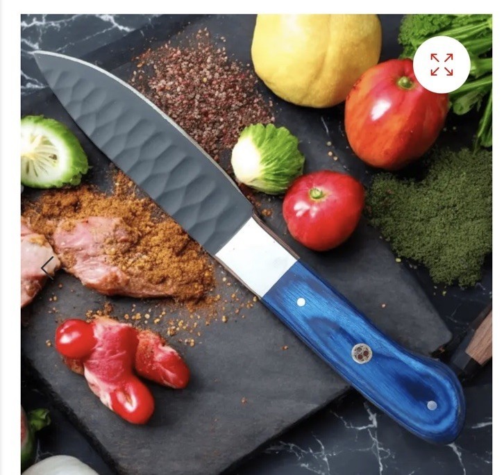 - 7-Piece Handmade Kitchen Knife Set with Blue Dollar Sheet Personilized