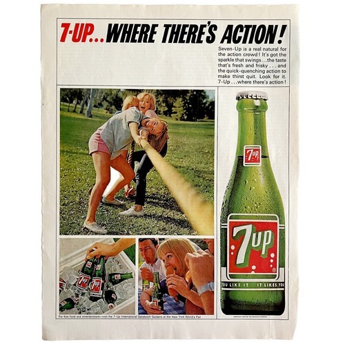 - 7 Up Where There's Action 1965 Advertisement Soda Pop Beverage DWII1