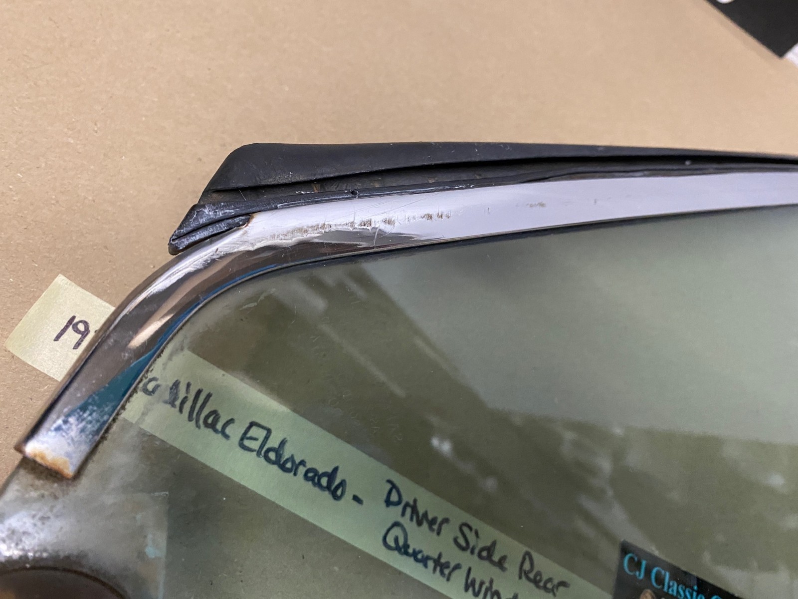- 70 Cadillac Eldorado LEFT DRIVER SIDE REAR QUARTER WINDOW GLASS WITH CHROME TRIM