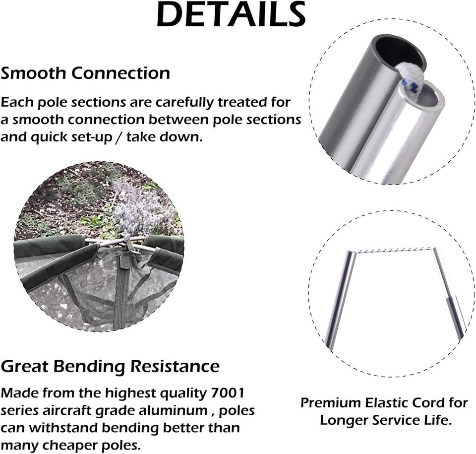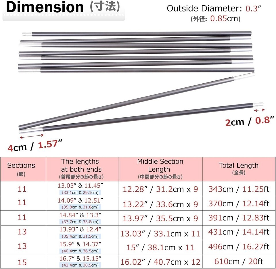 Assembled Pole Set: Designed for ease of use, saving you effort and time as you simply replace your old fiberglass or aluminum tent pole.