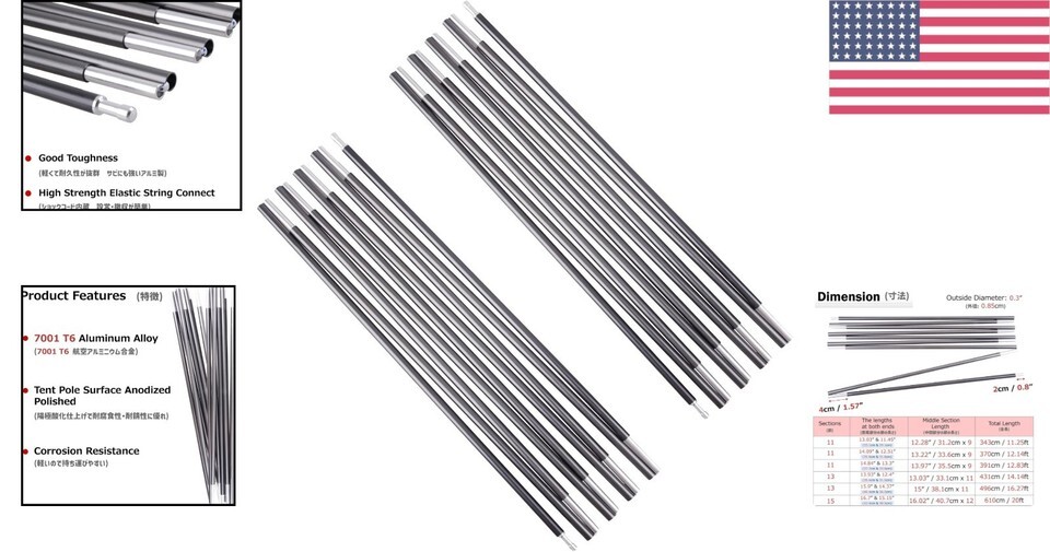 Backed by a 20- seller guarantee, your satisfaction is paramount. Revel in the confidence of quality craftsmanship - order your 7001 Series Aluminum Camping Tent Poles and elevate your camping experience today!