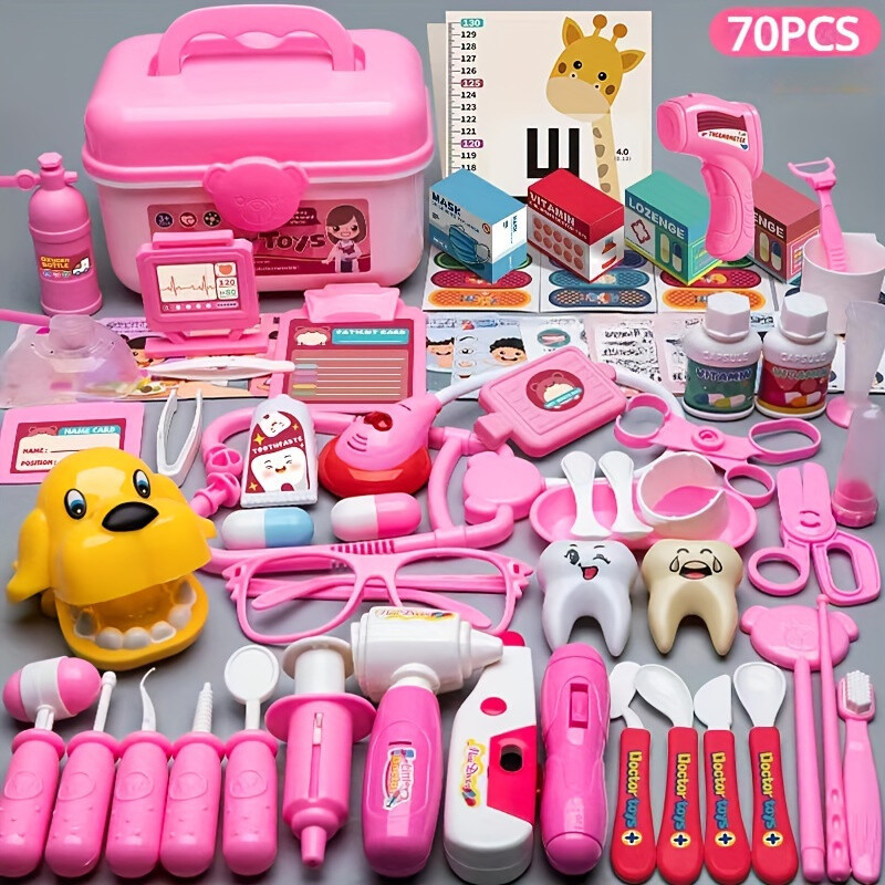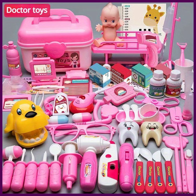 70pcs Pink Doctor Game Educational Toys, Kids Doctor Toy Set Tools, Medical Box for Boys And Girls, Play House Doctor Nurse Stethoscope Simulation Game, Suitable for Family Games, Doctor Toys, Toy Birthday Gifts, Holiday Gifts