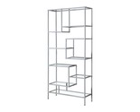72"H Modern Contemporary Bookshelf Bookcase Etagere Clear Glass Grey Metal