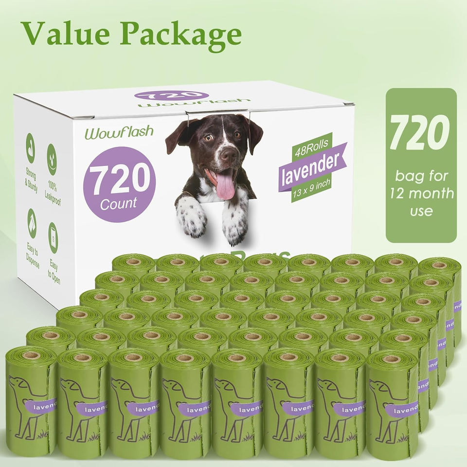 720 Count Lavender Scented 13? X 9?Dog Poop Bags Rolls, Leakproof Strong Sturdy Waste Bags for Doggie Cat Pet