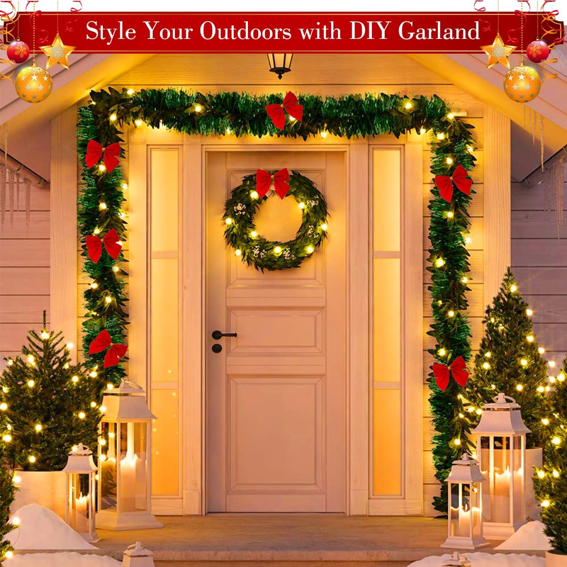 [Premium and Durable Materials] - Our outdoor garland is made from high-quality PVC plastic that looks realistic while being flame-resistant and long-lasting. It?s non-toxic and designed to help you create holiday memories year after year, both indoors and outdoors.
