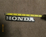 Honda fuel tank badge. Fits 73-76 CB750. Has mounting pins and the letter L on the back. I assume this indicates it is the Left badge. 7 1/4 inches long and 1 3/8 inches wide. 4 inches between the pins Slight damage to the N and the D. Check for fitment before purchasing.