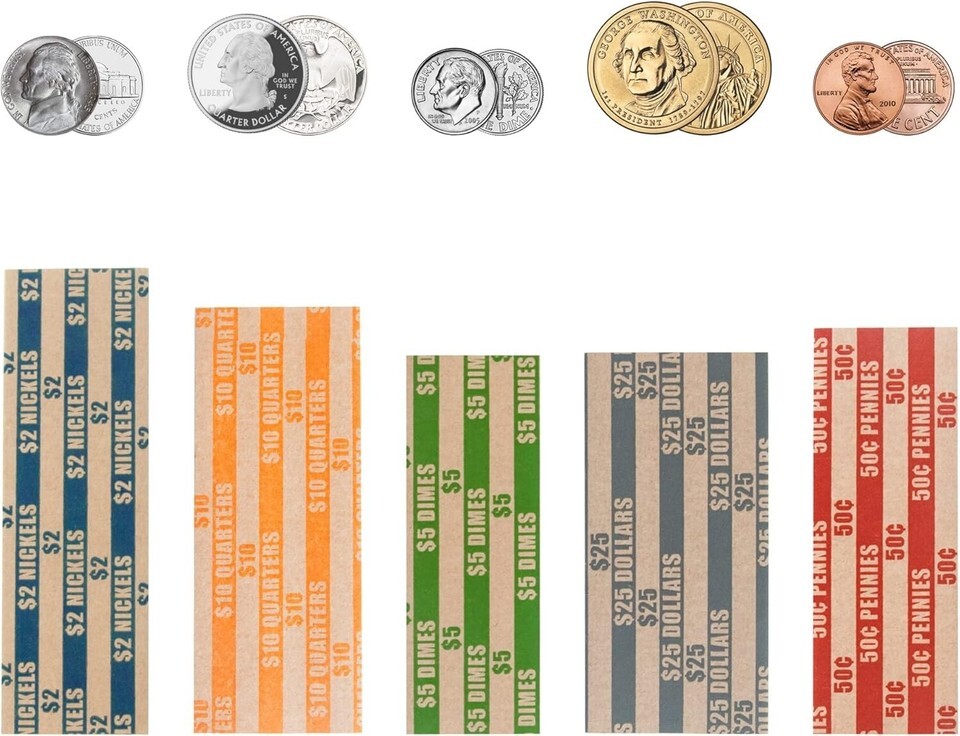 - 75 Each of Pennies, Nickels, Dimes, Quarters & Dollars - Eco-Friendly Coin Wraps