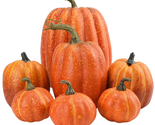 - 7PCS Pumpkins White Orange, Fall Artificial Pumpkins for Decoration Different Si