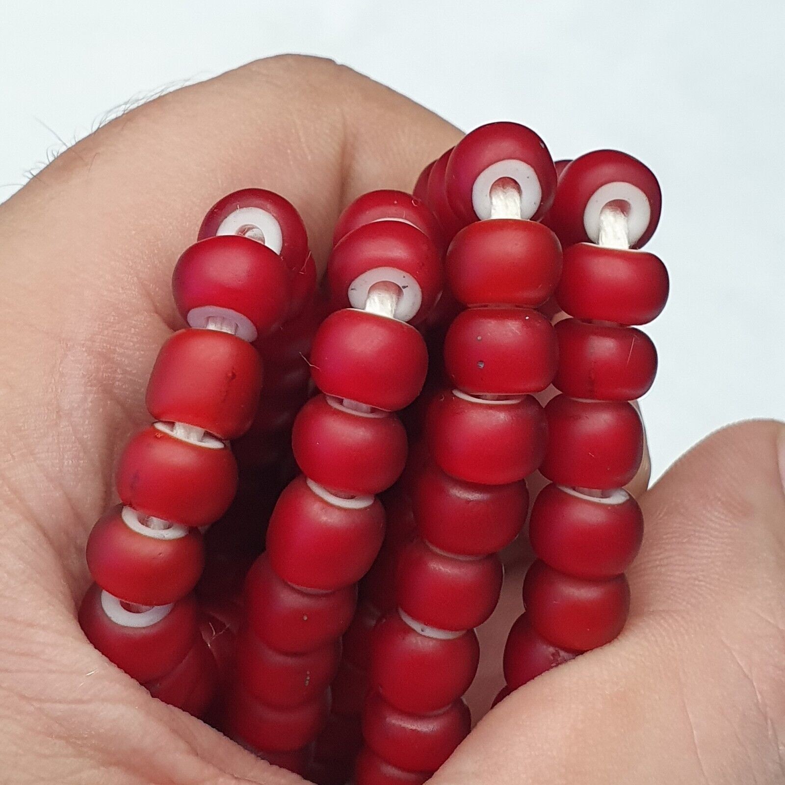 Weiße Herz-Perlenkette. alte venezianische rot weiße Herzperlen Diese Rocailles aus Glas messen 8-8,5 mm. die deutlich großer sind als die gangigeren. . Sie wurden um die Jahrhundertwende in Italien als Handelsperlen für Afrika hergestellt. Die Farbe ist super und sie fühlen sich wunderbar an. Vintage afrikanische Handelsperlen. Sie ergeben eine schone und ausgefallene Halskette.