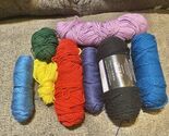 - 8 Assorted Rolls Of Yarn Lot Purple Yellow Block Green Blue Red