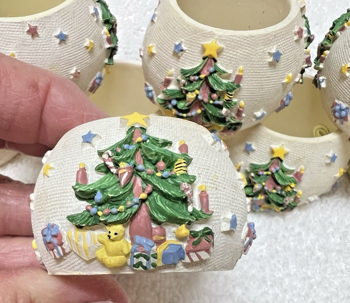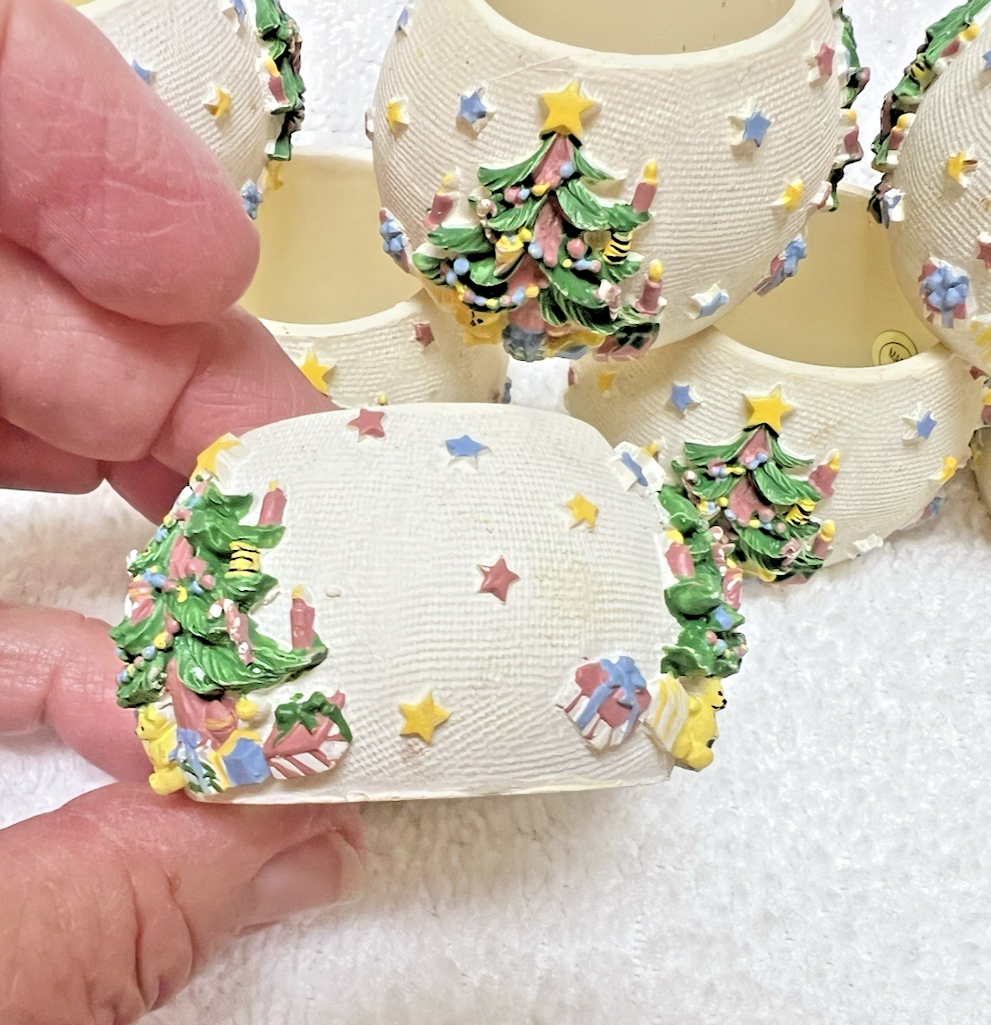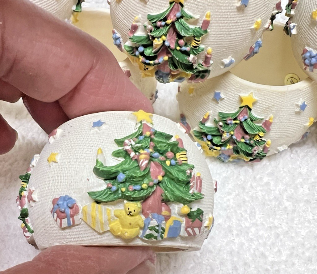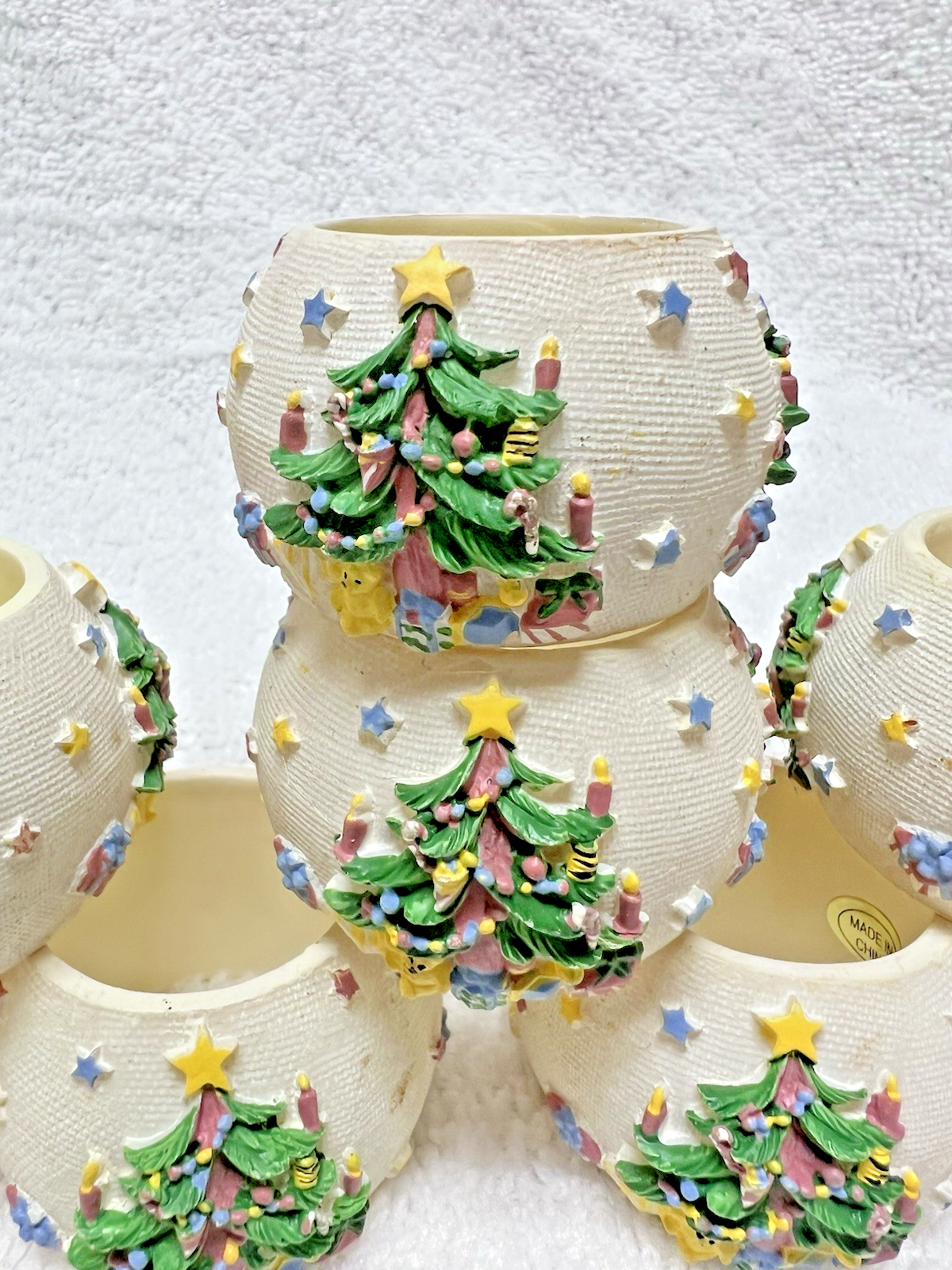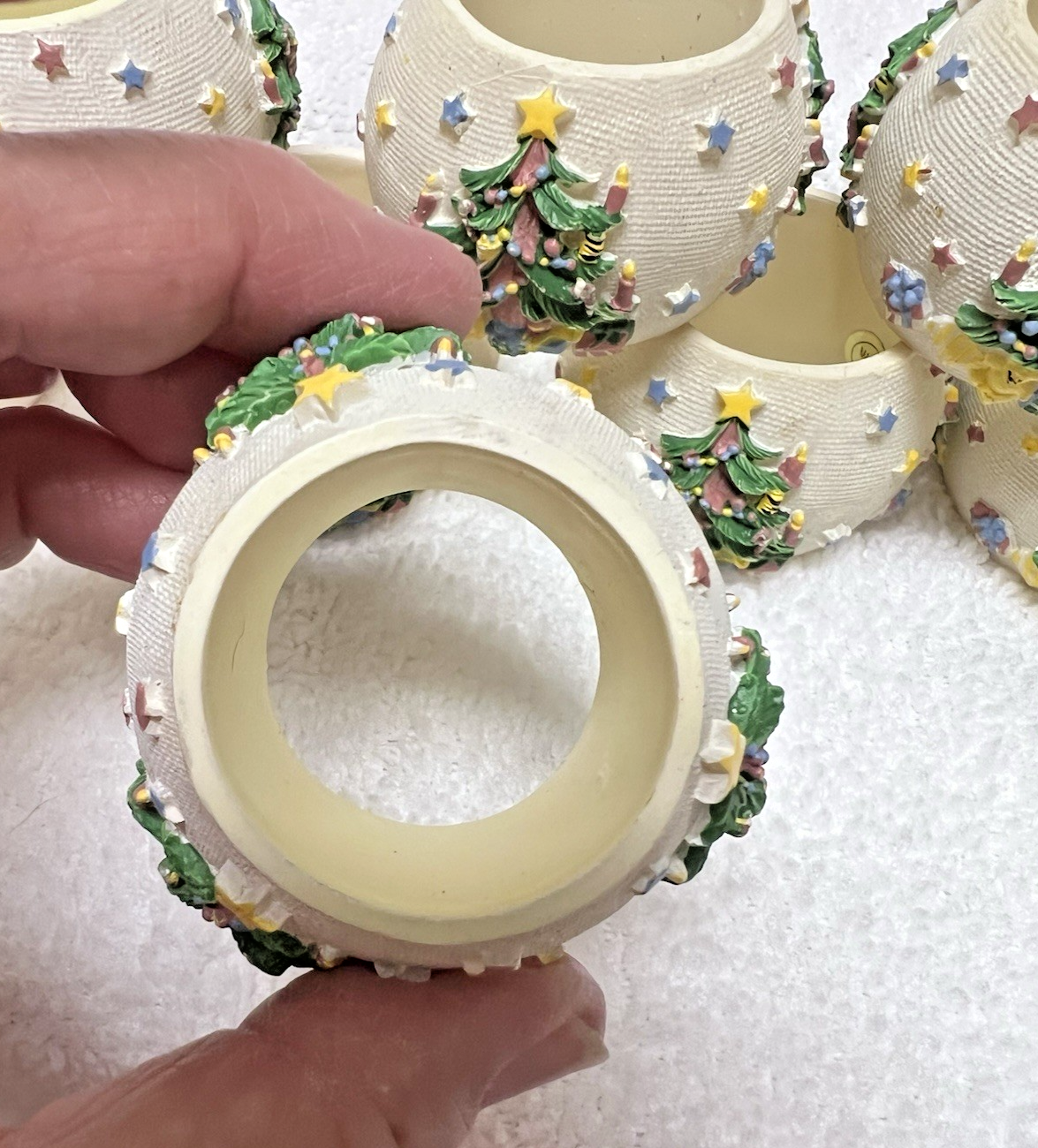 - 8 Christmas Tree Napkin Ring Holders in Good Shape Colorful Fun 3D 1 1/4 Opening
