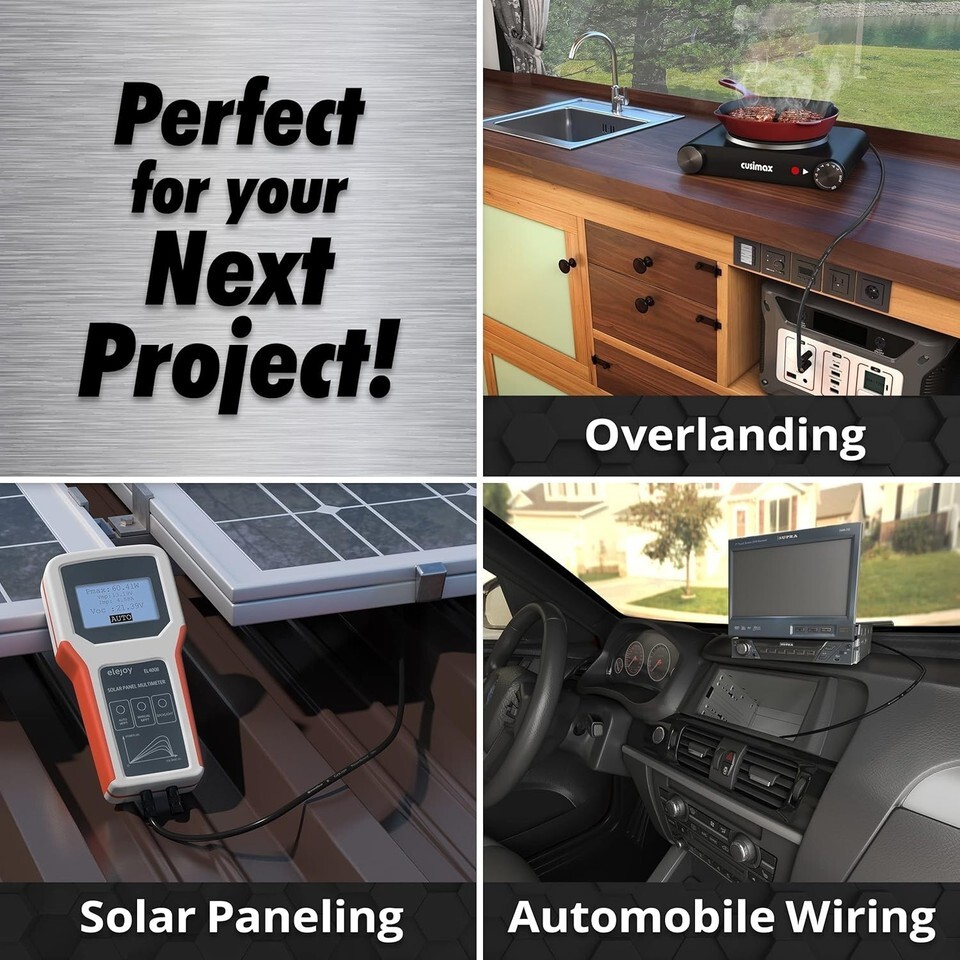 Quality Wiring Solutions: Prioritizing high performance for various wiring needs, including car audio systems, home stereo systems, RV trailer wiring, and solar panel projects.