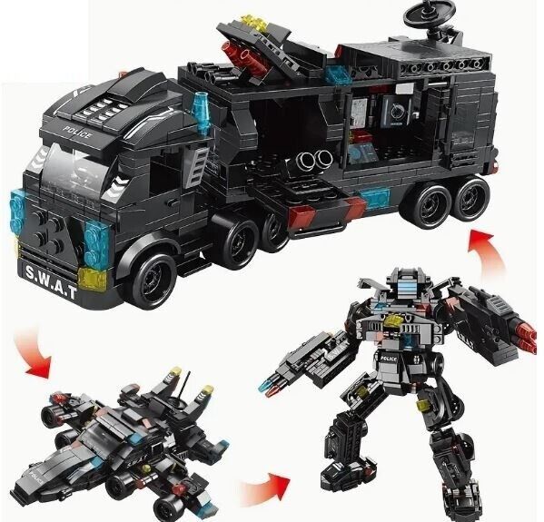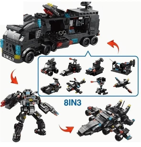 8 In 1 City Series Building Blocks 3 Changes SWAT Station Assembled Car City