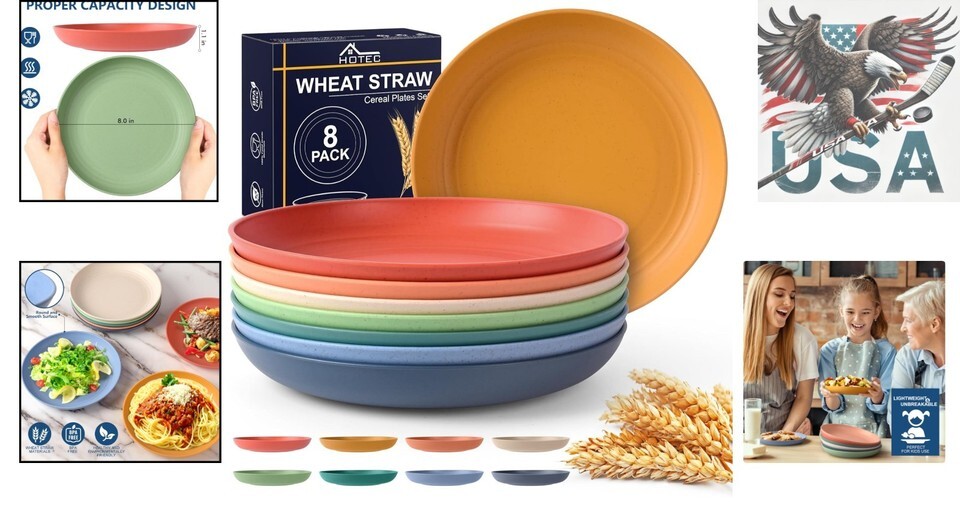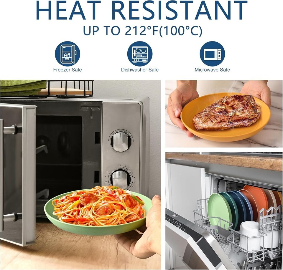 - 8-Pack 8-Inch Unbreakable Wheat Straw Plates - Dishwasher Safe & BPA-Free