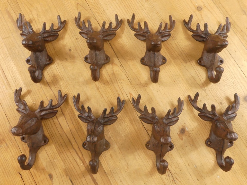 8 Rustic Elk Deer Head Hooks Cast Iron Coat Hook Rack Restoration Hat Entryway