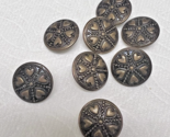- 8 Vintage Round Metal Buttons 5 Hearts w Rope Design 3/4 inch Gold Tone